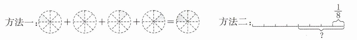 $\frac{1}{8}+\frac{1}{8}+\frac{1}{8}+\frac{1}{8}=\frac{1}{2}$ $\frac{1}{8}×4=\frac{1}{2}$ 相同