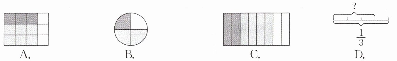 D 解析:根据题图可知,选项D中求的是$\frac{1}{3}$的$\frac{3}{4}$是多少。