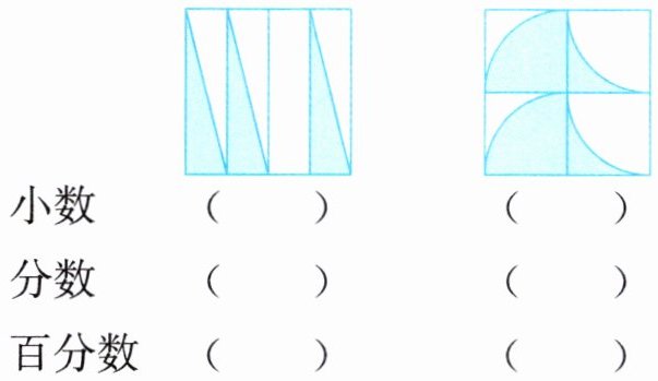 1. 分别用不同的数表示图中涂色部分占整幅图的多少。