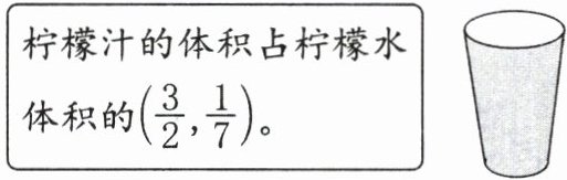 2. 小泽调了一杯柠檬水,共280毫升。先圈出下图括号内符合题意的分数作为条件,再计算柠檬汁和水的体积各是多少毫升。(5分)