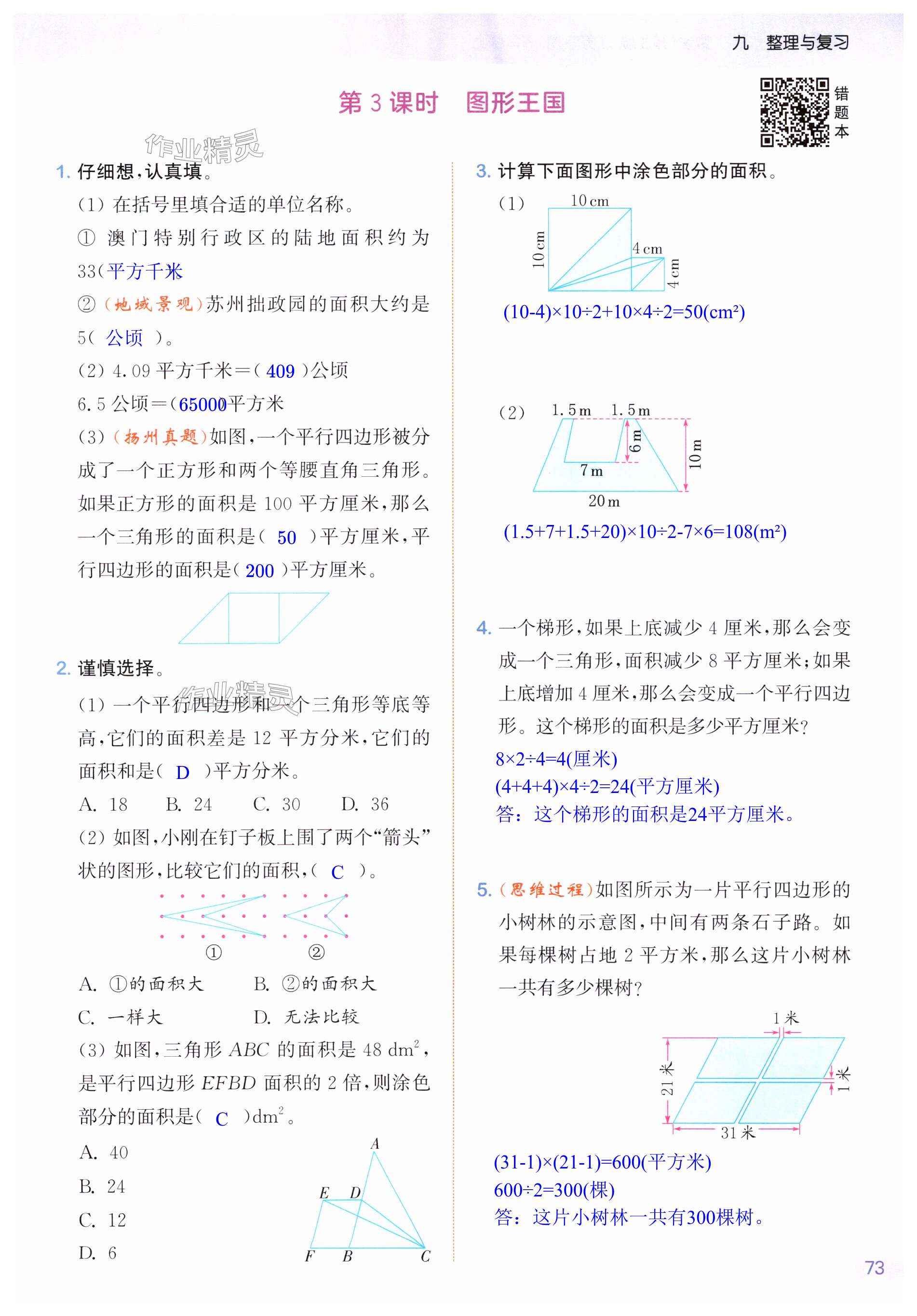 注:目前有些书本章节名称可能整理的还不是很完善,但都是按照顺序排列的,请同学们按照顺序仔细查找。练习册 2025年通城学典课时作业本五年级数学上册苏教版江苏专版 答案主要是用来给同学们做完题方便对答案用的,请勿直接抄袭。