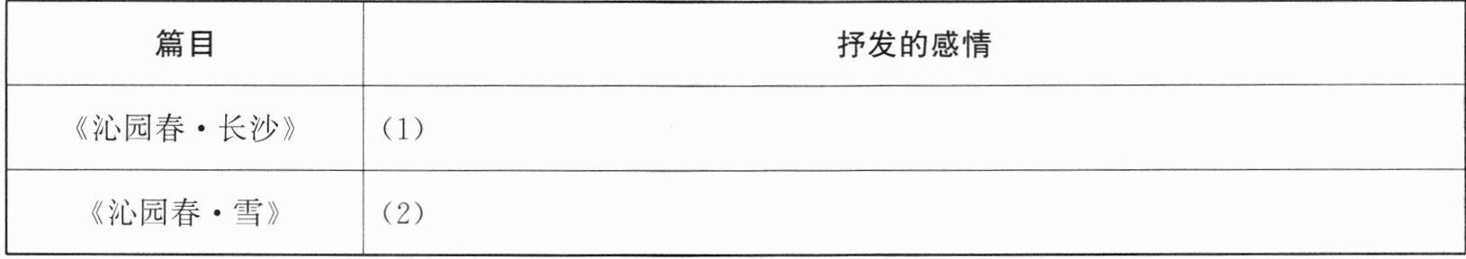 11. [体会情感]试比较这首词和《沁园春·雪》所抒发的感情有何不同。