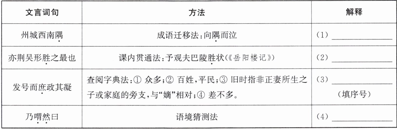16. 参考表格提示的方法,解释加点词。