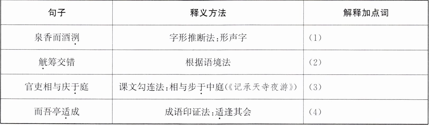 11. 请参考表格提示的方法,帮小渝解释加点词。