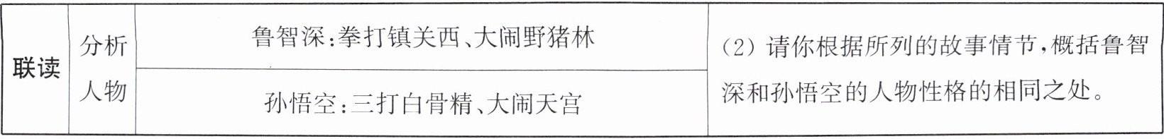 (2)鲁智深和孙悟空都有疾恶如仇、除恶务尽、爱憎分明、敢于反抗等性格特点。