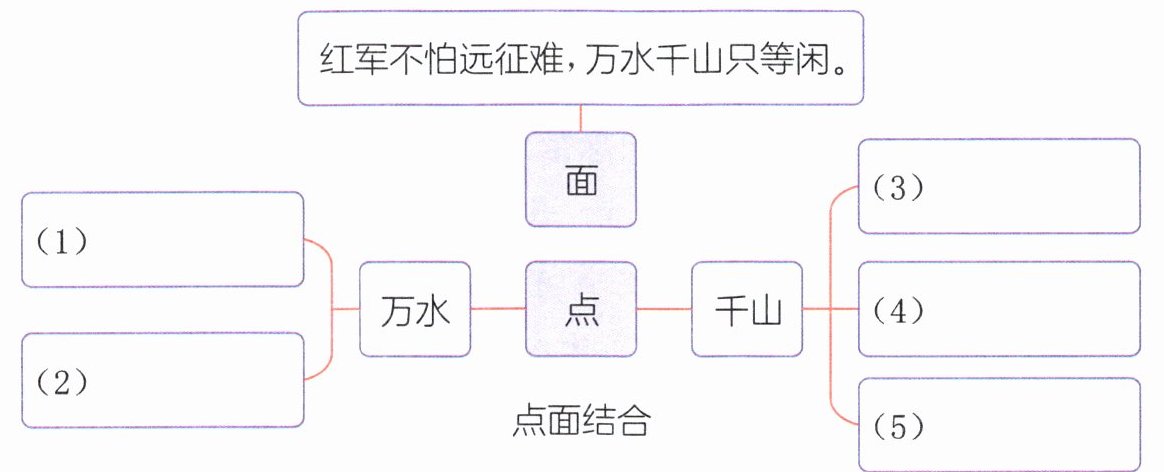 1. (思维导图)这首诗为我们展示了五幅红军“长征图”,请你仿照下面的例子加以概括。