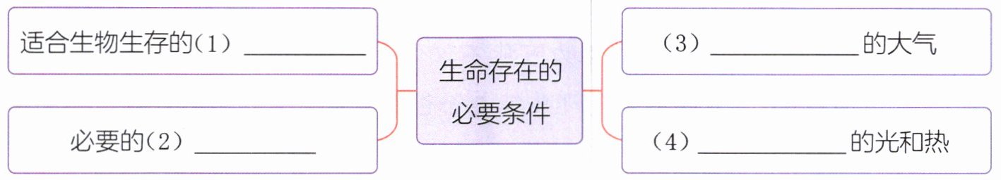 1.(思维导图)为了理清生命存在的必要条件,可以用______的阅读方法认真阅读第①自然段。阅读完后,把思维导图补充完整。
