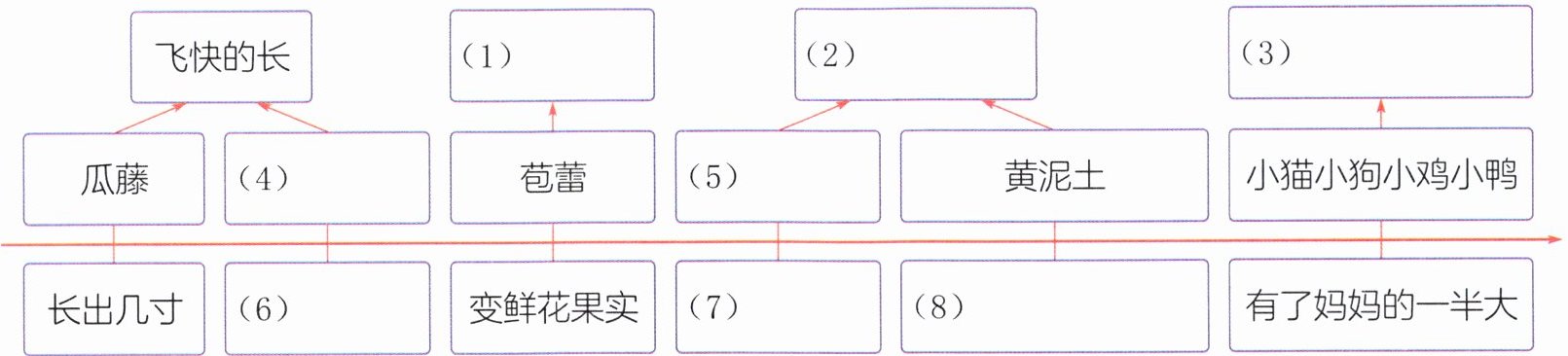 (1)句 A 把植物“苞蕾”“鲜花”“小果实”几种生长状态浓缩在“昨天”“今天”“明天”这较短的时间段,巧妙地写出了____。