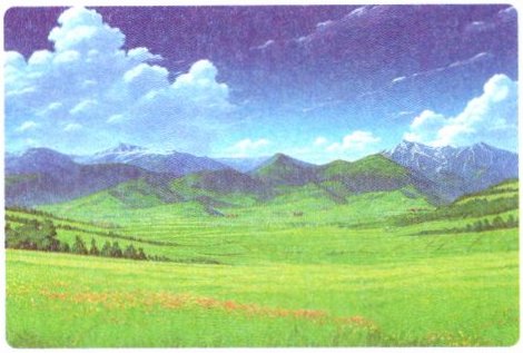 ⑤ 呜呼!草原八月末。大矣!净矣!静矣!真矣!我一步三回头地离开那块神秘的草地。将要翻过山口时又停下来伫立良久。明年这时还能再来吗?我的草原!