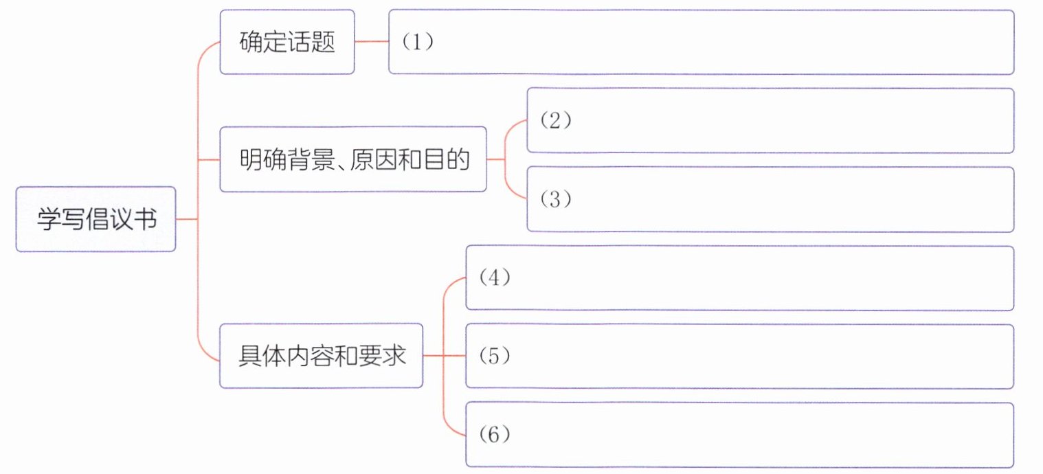 三、[梳理思路]确定好要围绕哪一个话题来发起倡议,理清思路,完成下面的思维导图。