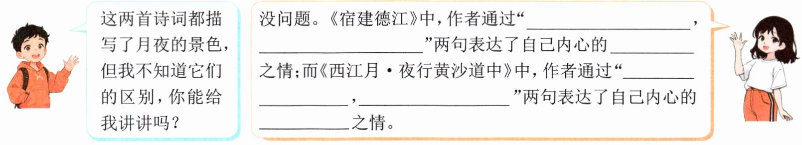 3. (情境学习)阅读《宿建德江》和《西江月·夜行黄沙道中》两首诗词,补全下面的对话。
