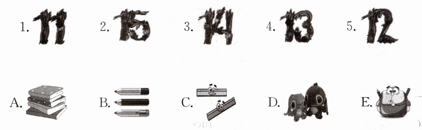 四、同学们在统计旧物。读句子,将提到的物品与对应数目连线。
