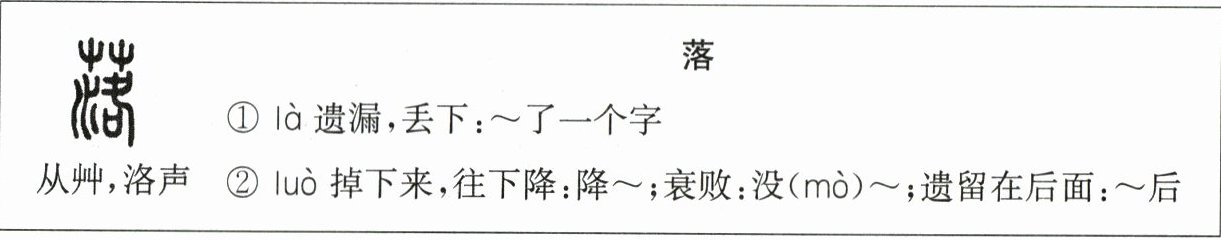 (2)“落”字的读音引起了苏苏的注意,请你根据释义辨析。(2分)