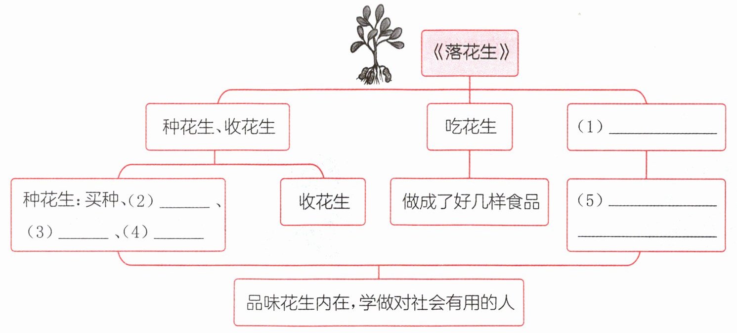(1)议花生 (2)翻地 (3)播种 (4)浇水 (5)好处很多,不好看,却很有用