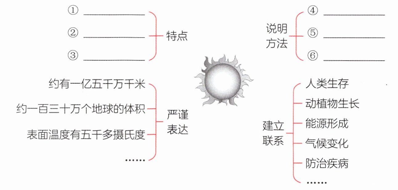 ① 距离远 ② 体积大 ③ 温度高 ④ 列数字 ⑤ 作比较 ⑥ 打比方