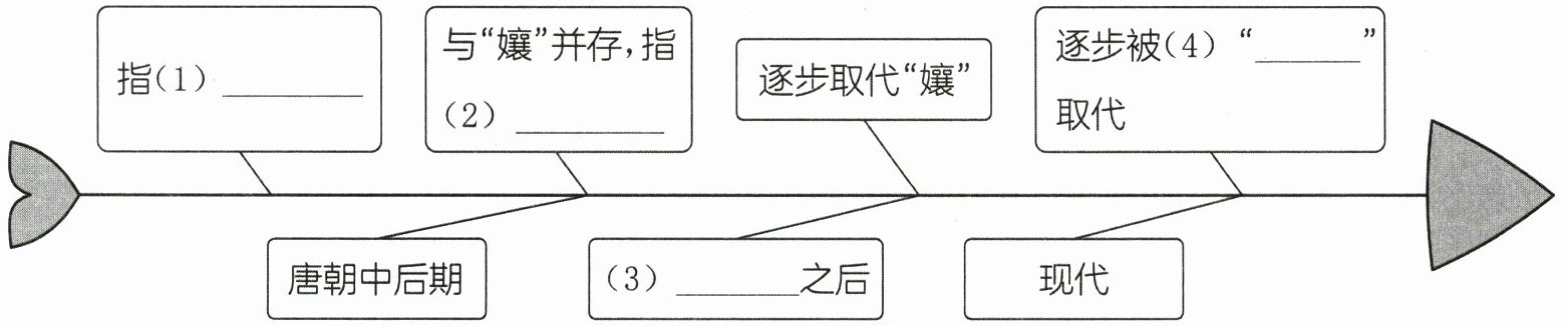 1. (思维导图)小语根据材料一,梳理了“娘”的称谓的演变过程,请你帮他完善。(2分)
