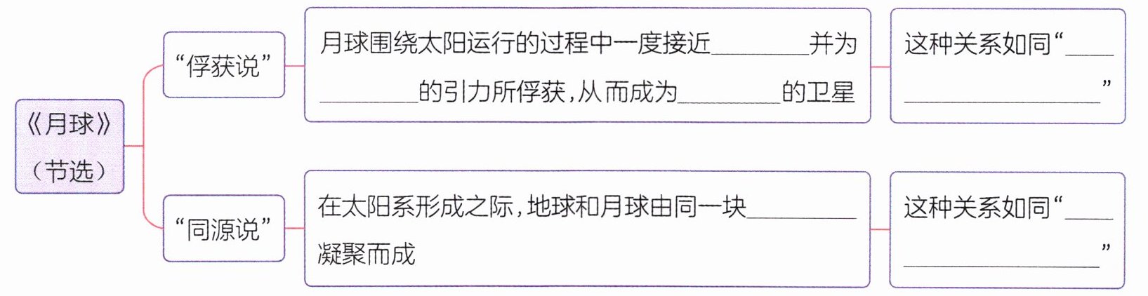 4. 除了文中提到的两种学说,还有一种“分裂说”,把月球看作是地球的女儿。你能猜出这种学说的具体内容吗?