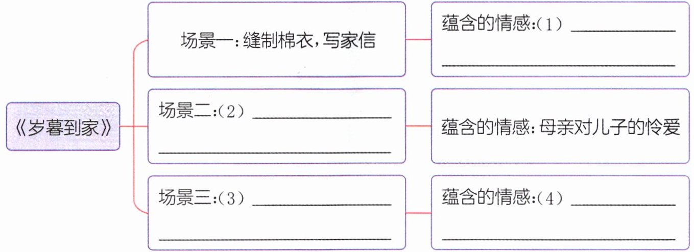 2. (阅读要素)感悟诗中具体描绘的场景,体会其中蕴含的情感,完成思维导图。