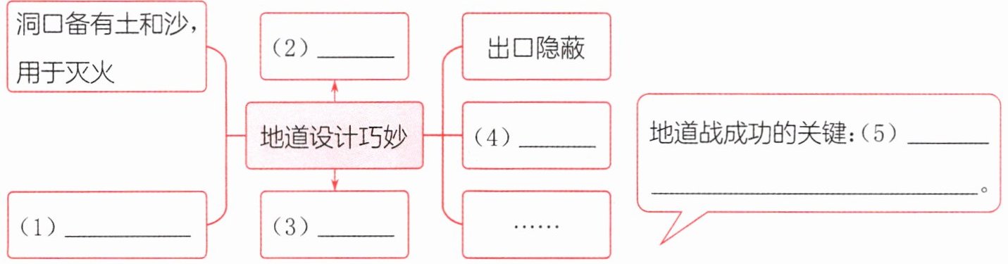 (1)地道跟枯井相连,可排水 (2)“孑口”上装有吊板 (3)有“警戒洞” (4)有“迷惑洞” (5)冀中人民的顽强斗志和无穷智慧