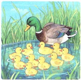 ① 池塘边的草丛中住着一只绿翅膀水鸭,它刚刚生下十个蛋。这十个蛋可是它最宝贵的东西,像钻石一样珍贵! 在水鸭妈妈的细心照顾下,小水鸭们安全出生,像黄色天鹅绒做成的十个小椅垫……
