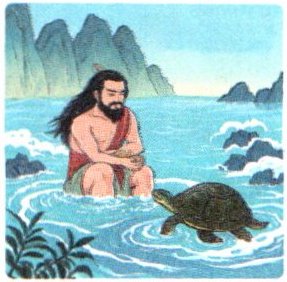 ② 有一天,鲧正在愁闷时,从水里浮上一只灵龟对他说:“不要发愁,您可以用息壤来治住洪水呀!”鲧想起来了,息壤是天帝的宝物,只要撒在地上,它就能生出很多泥土,能治住洪水,他很高兴地对灵龟说:“谢谢你的指点,我马上去昆仑山取息壤。”