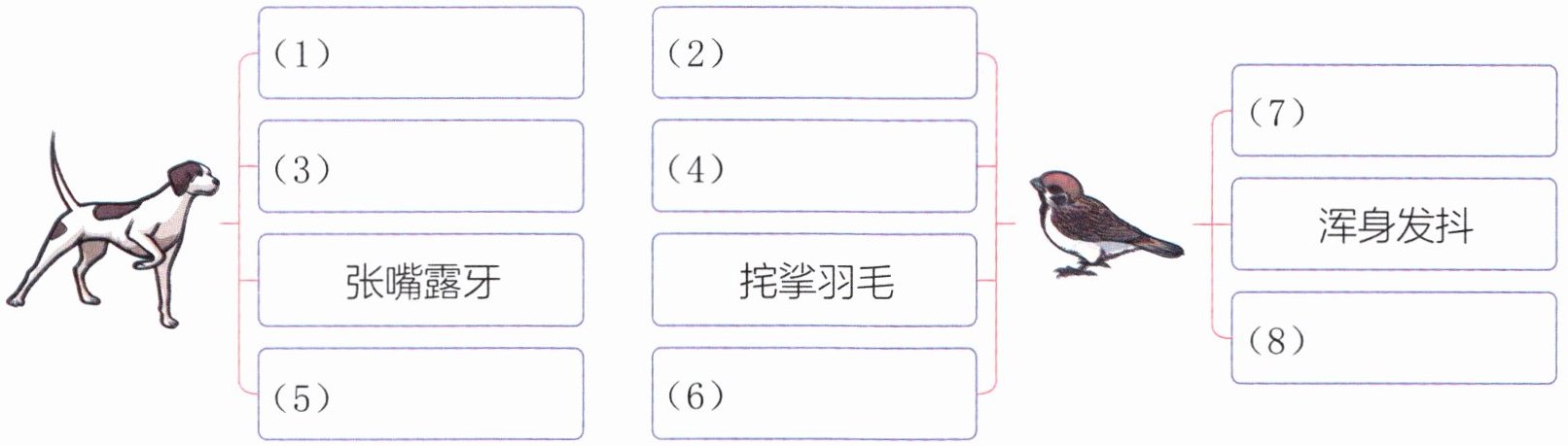 3. (创意表达)猎狗与老麻雀对峙时,双方心里都会想些什么呢?请写一写。