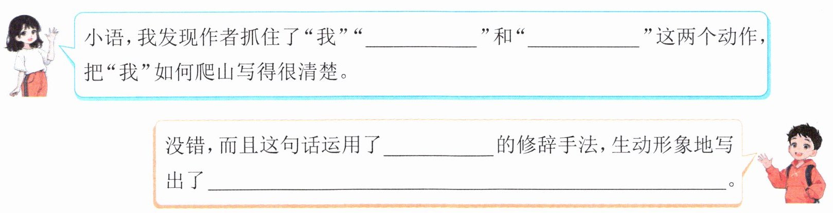 3.(情境学习)小文和小语对文中画“____”的句子展开了讨论,请你试着补全对话。