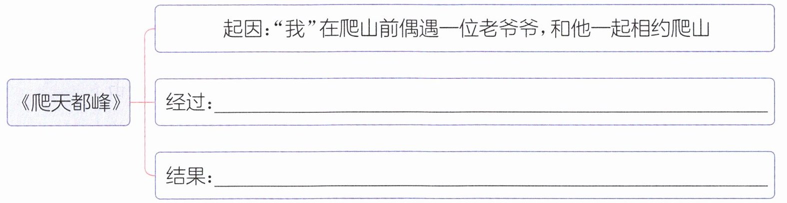 起因:“我”在爬山前偶遇一位老爷爷,和他一起相约爬山