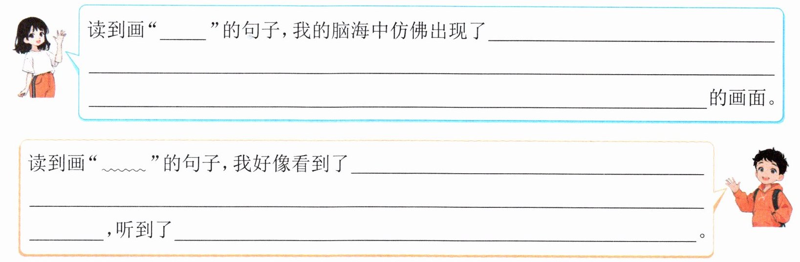 3.(阅读要素)同学们正在根据文字想象画面,请你补全他们的对话。