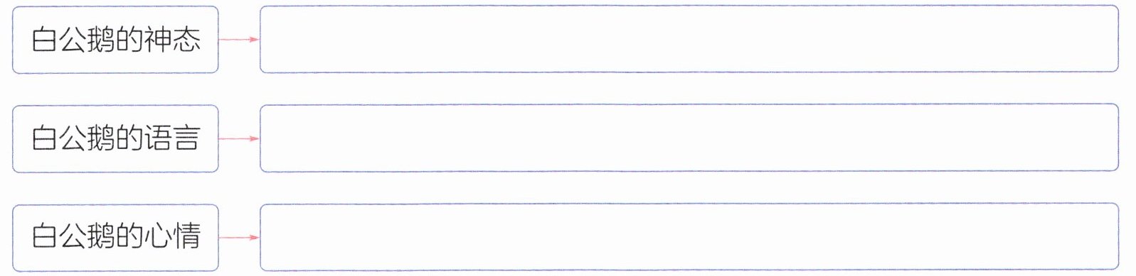 2. 阅读画“____”的句子,试着想一想白公鹅此时的神态、语言、心情。