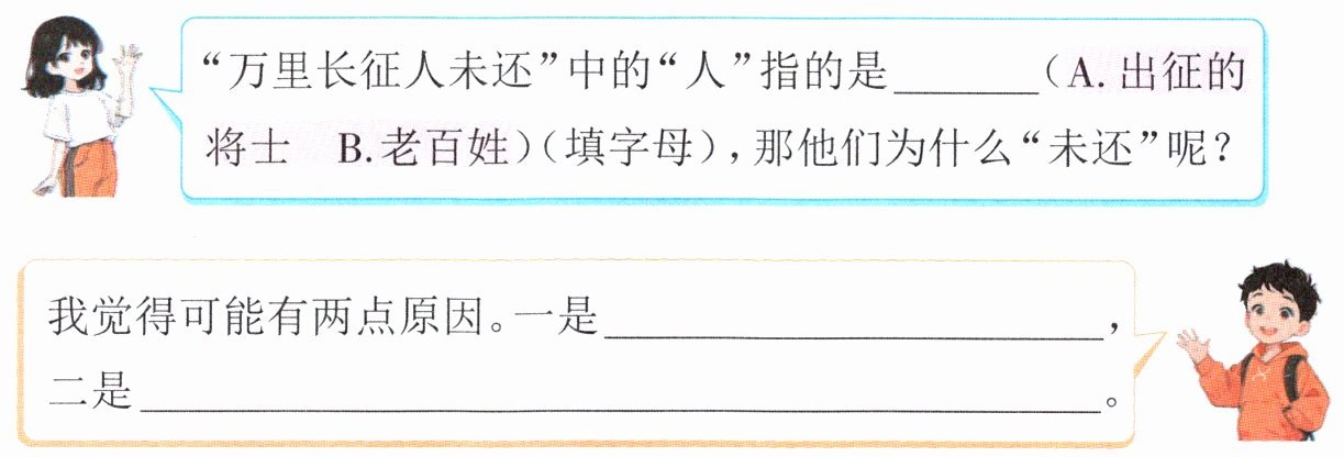 2. (情境学习)小文和小语围绕“人未还”展开了讨论,请你补全他们的对话。