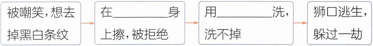 2. (思维导图)根据提示,把小斑马的经历补充完整。
