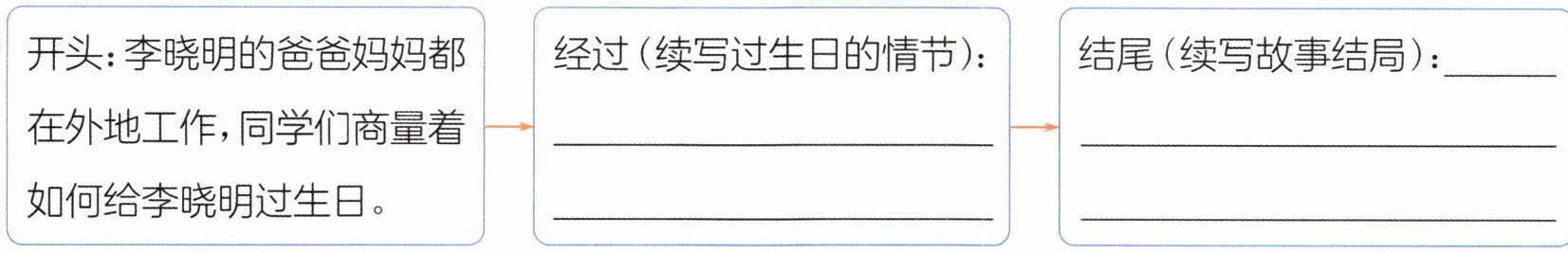 李晓明走进教室,看见教室里摆着生日蛋糕,挂着彩带,他感动极了。