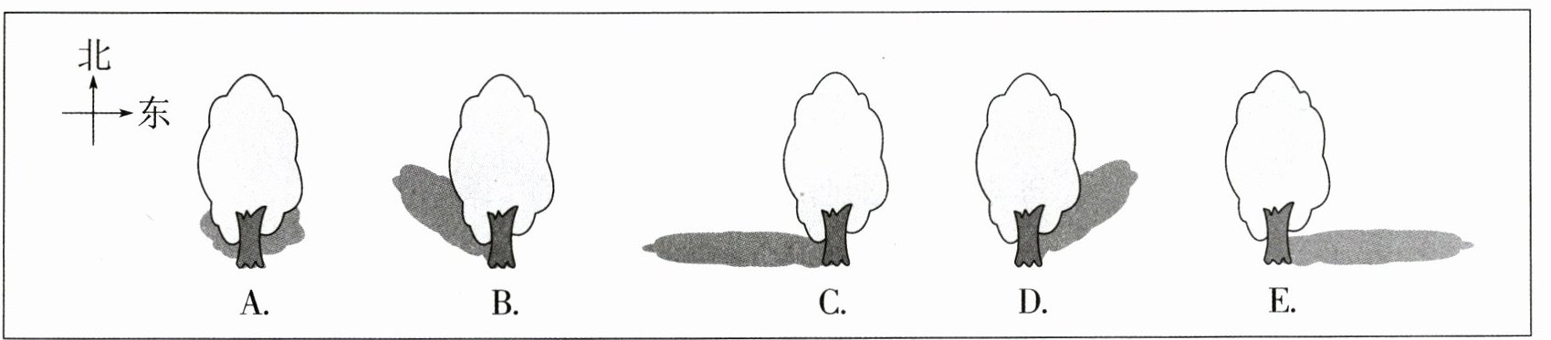 3. 请根据材料一的内容,按照从早到晚的时间顺序排列材料二中树影的图片,将字母填写在下面横线上。(6分)