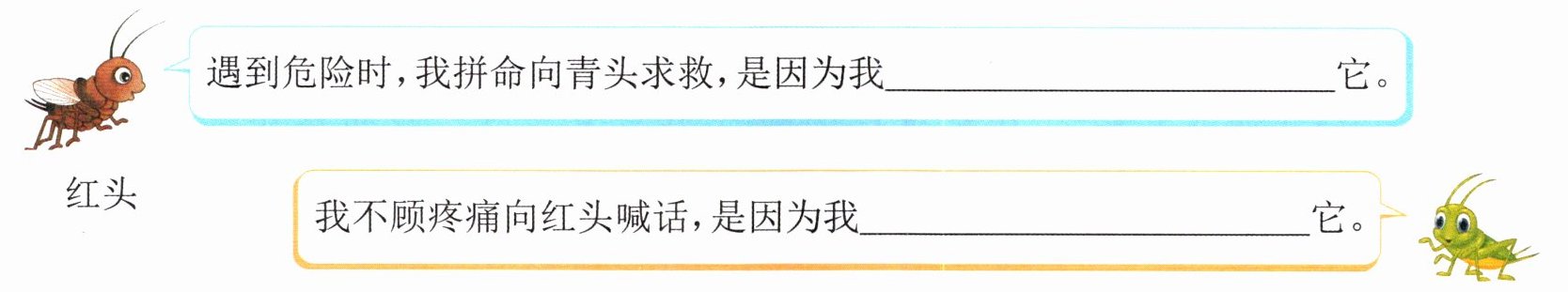 2. (情境学习)体会红头和青头之间真挚的友情,把它们的内心活动补充完整。