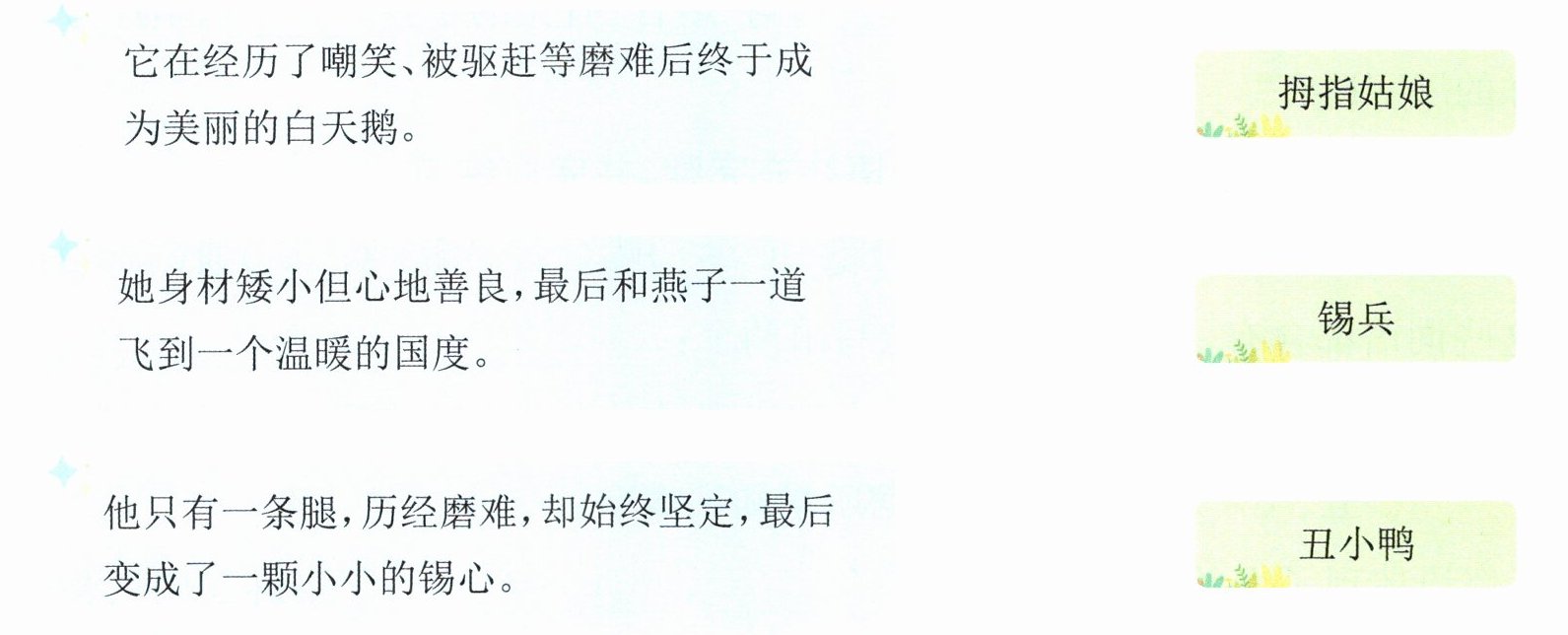 二、(泰州兴化真题)听,小精灵在念故事中的人物介绍,请猜出对应的人物,连一连。