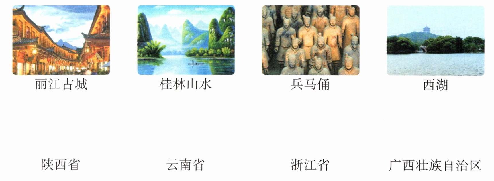 三、(跨学科·地理)将下列名胜古迹与其所在地连起来。