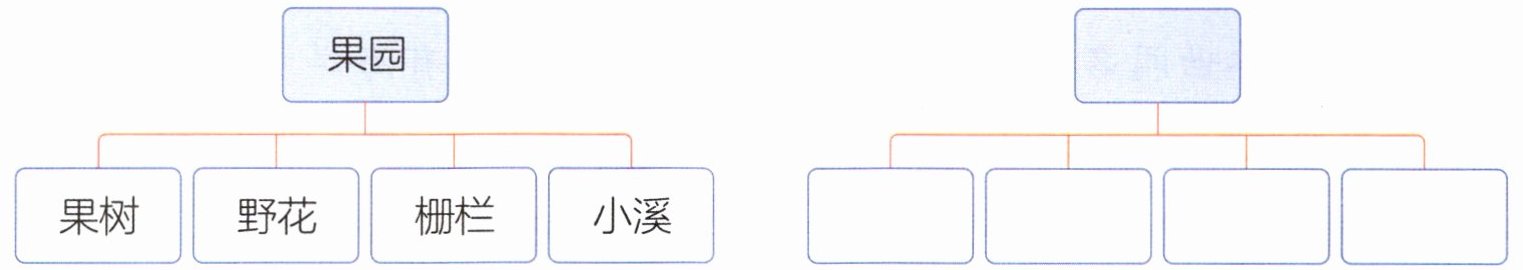 三、示例:1. 公园 假山 小桥 树木 小河 2. 公园 从远到近 公园真美