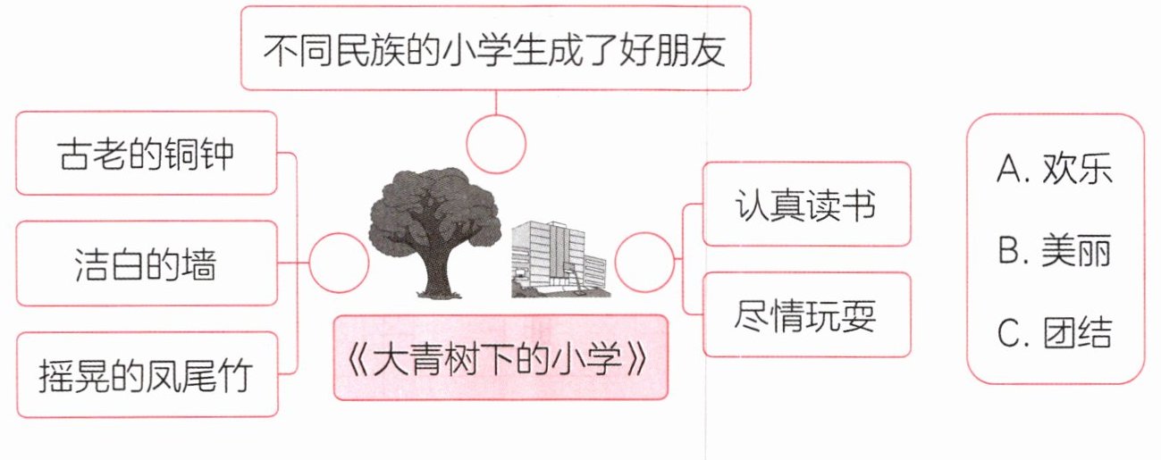 五、学校精心绘制了展示学校特色的图片。读一读,选一选。(填字母)