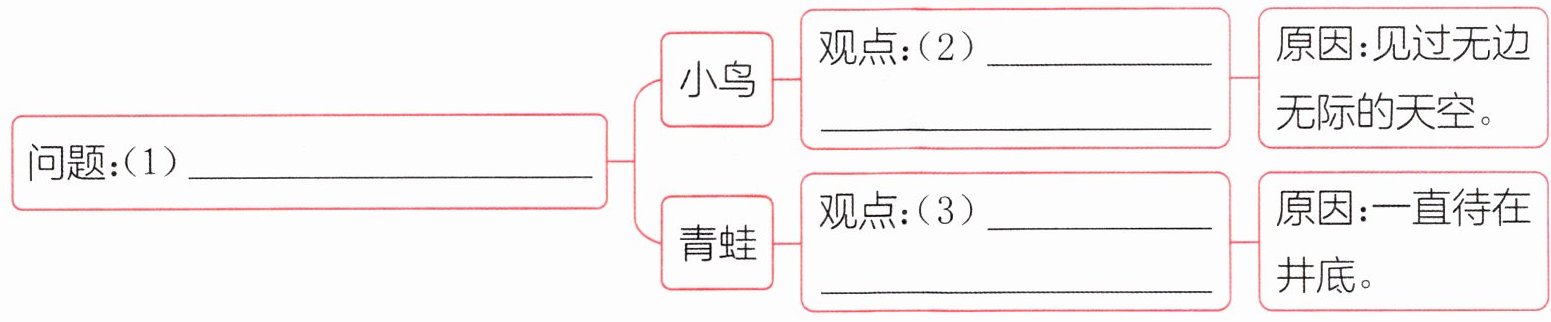 (1)天有多大? (2)天无边无际,大得很。 (3)天不过井口那么大。 ②
