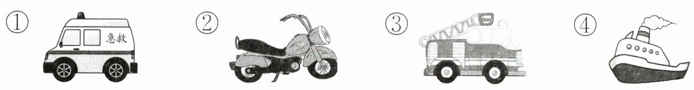 ④ 解析:①②③项都是在陆地上行驶的车;④项是轮船,在水上行驶。