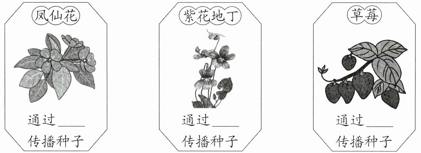 3. ③ ② ② 解析:由短文第②自然段可知,凤仙花通过自身弹射传播种子;由短文第③自然段可知,紫花地丁通过蚂蚁传播种子;由第④自然段可知,草莓通过“动物出租车”和自身的匍匐茎传播种子。