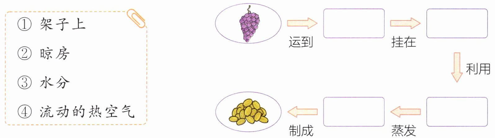 4. 选一选,说说葡萄干是怎样制成的。(填序号)