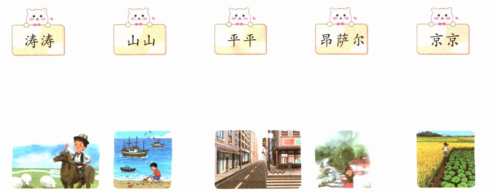 阅读之星 五、看看谁是阅读领航之星!小文正在阅读《画家乡》,请你帮助小文找到小朋友们的家乡吧!