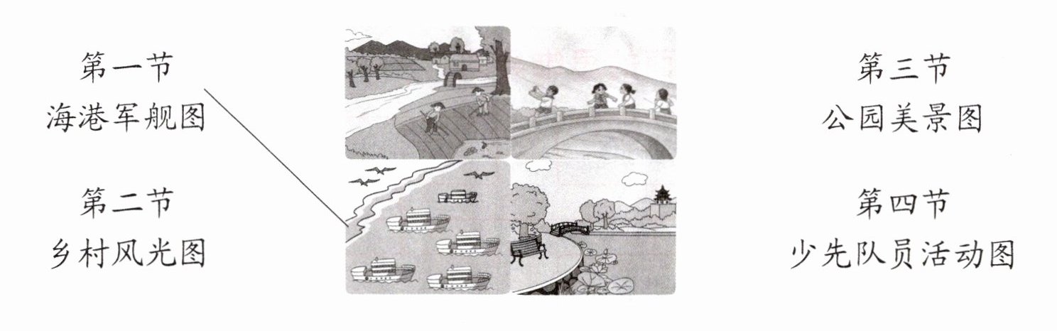 六、课文每一节都描绘了一幅场景图。照样子,连一连。