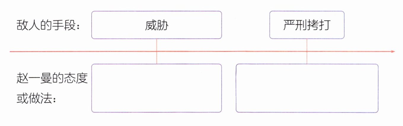 2.(思维导图)从哪里可以看出赵一曼宁死不屈?结合短文内容,将下面的思维导图补充完整。