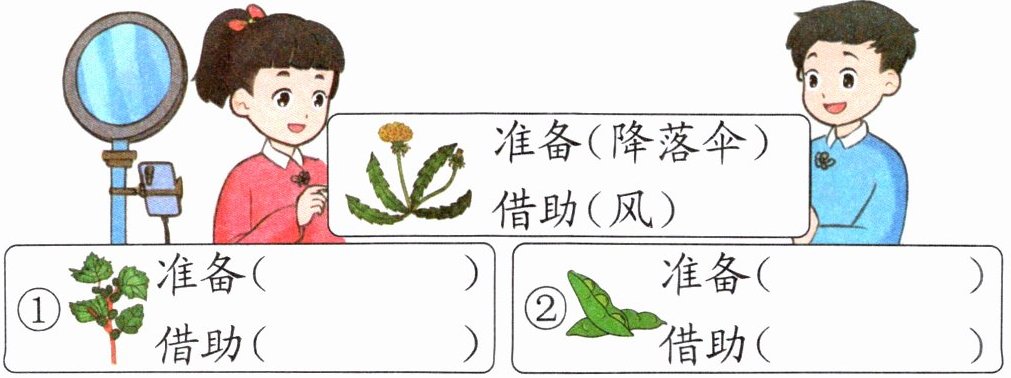 五、照样子,为大家介绍下面的植物是怎么传播种子的。