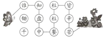 九、根据《悯农》(其二),画出蝴蝶飞到花上的路线。(10分)