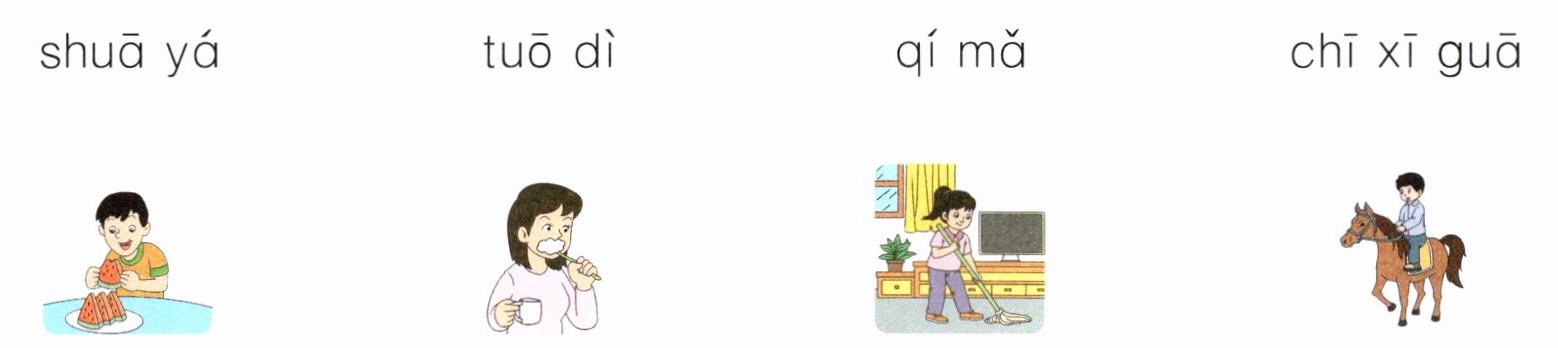 四、请家长按照拼音提示做出相应的动作,请小朋友们将动作和对应拼音连起来。