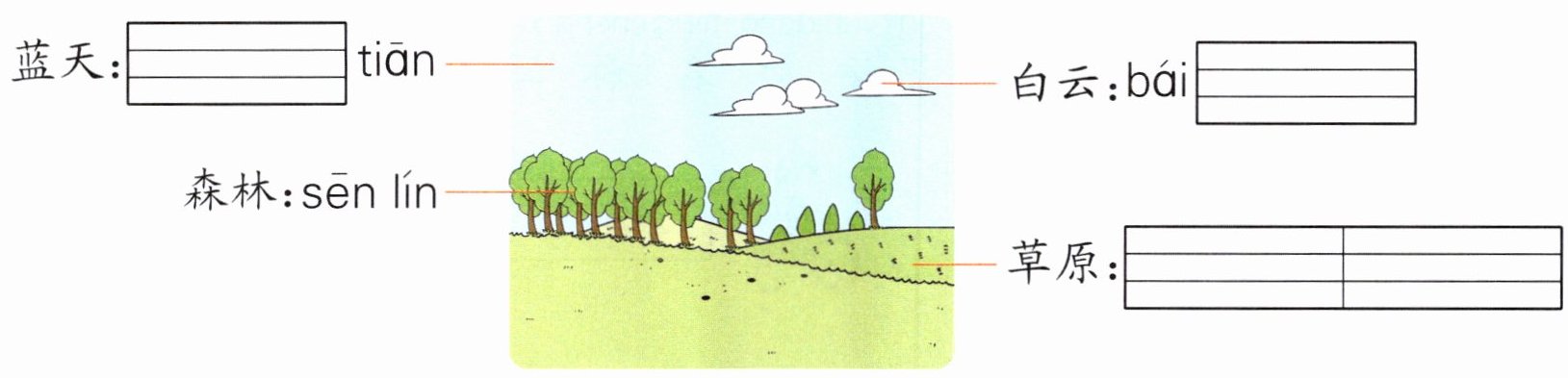四、请你仿照示例,结合图片,用拼音把句子补充完整。